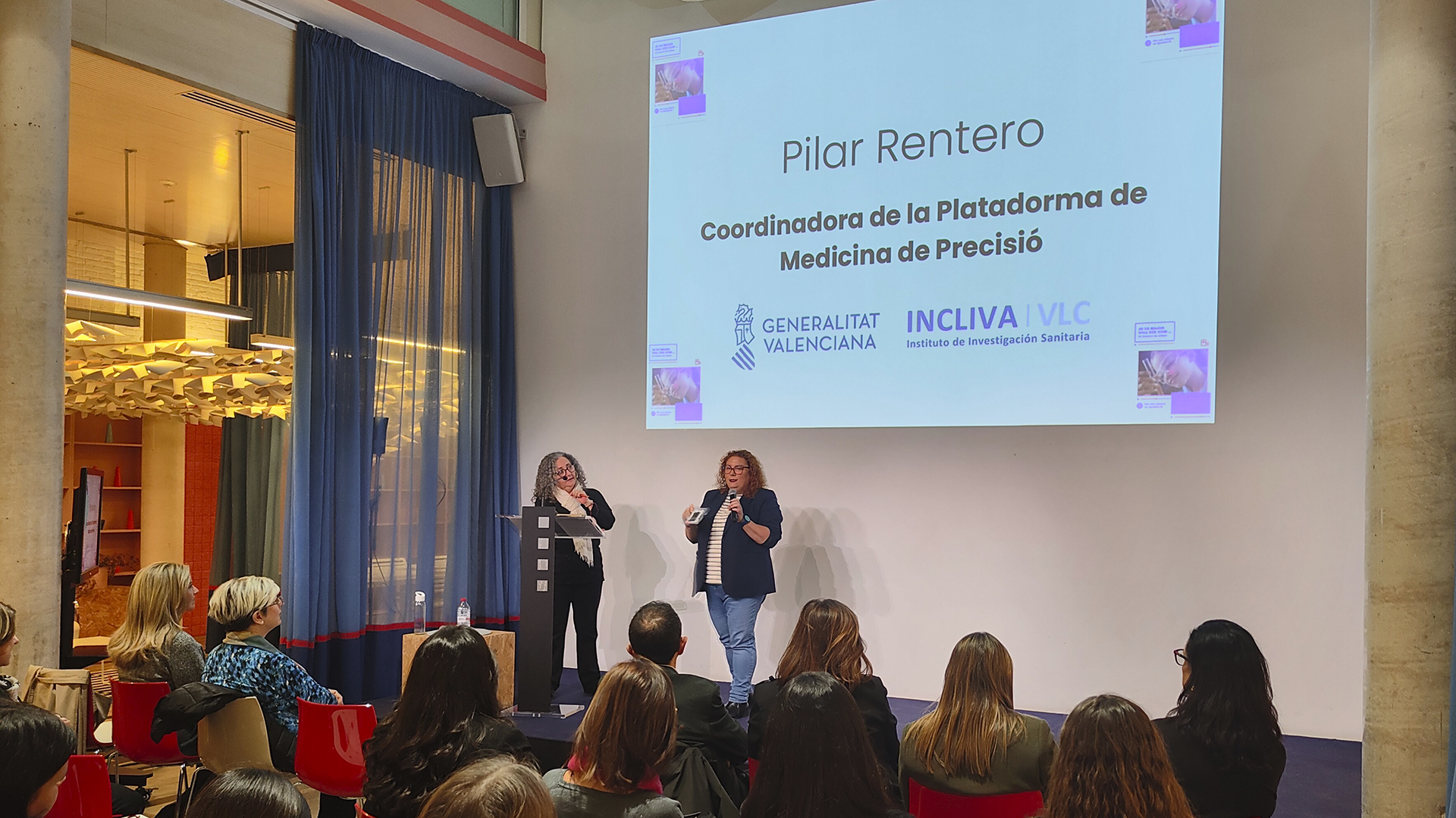 Por parte de INCLIVA, han participado en el acto Vicente de Juan, director gerente, y la doctora Pilar Rentero, responsable de la plataforma de Medicina de Precisión, quien ha explicado el camino que la ha llevado a liderar esta plataforma que promueve y desarrolla una investigación traslacional de calidad ofreciendo apoyo tanto en técnicas de biología molecular como de análisis de datos.