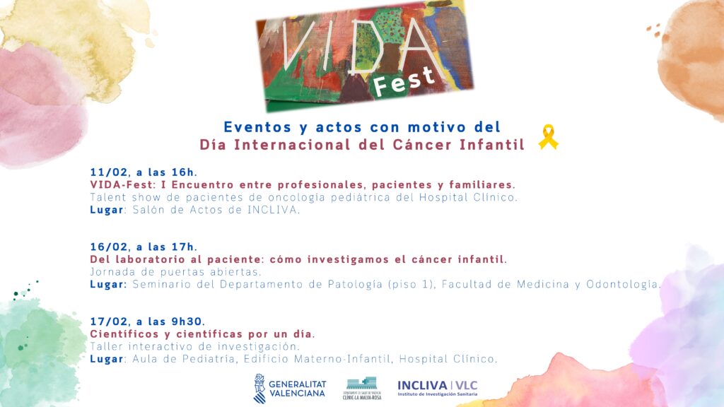 El Instituto de Investigación Sanitaria INCLIVA, del Hospital Clínico Universitario de València, organiza una jornada de puertas abiertas e interactiva sobre cáncer infantil dirigida a asociaciones, familias y personas interesadas en conocer el estado actual de las investigaciones en relación con esta patología.