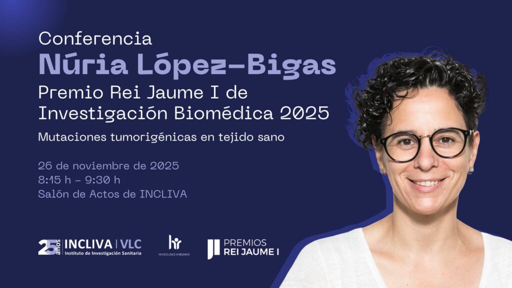 El próximo 26 de noviembre tendremos el honor de recibir en INCLIVA a la Dra. Núria López-Bigas, galardonada con el premio Rei Jaume I de Investigación Biomédica 2025, que pronunciará una conferencia bajo el título ‘Mutaciones Tumorigénicas en tejido sano’, en un encuentro abierto para el personal investigador, su red y cualquier persona interesada.