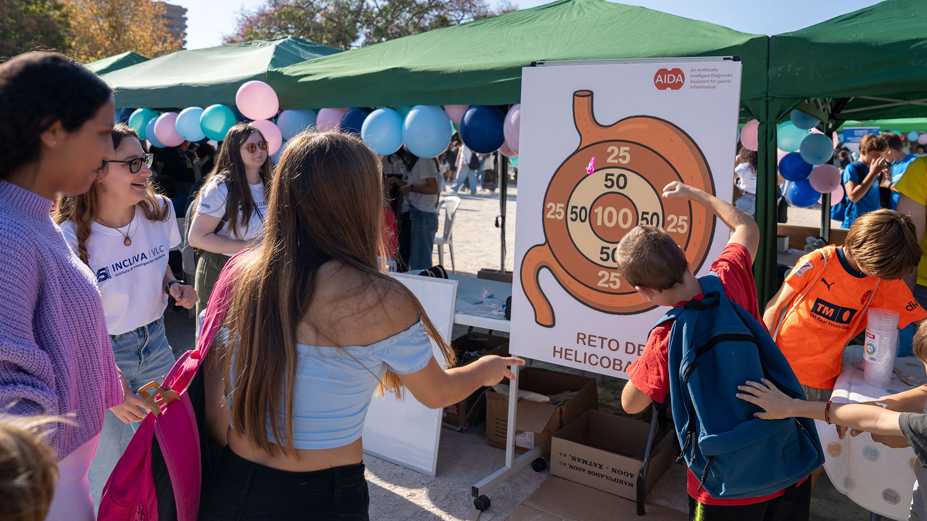 INCLIVA organizó cuatro talleres de diferentes temáticas: ‘Misión estómago saludable’, a cargo del Grupo de Investigación Traslacional en Cáncer Esofagogástrico y en el marco del proyecto europeo AIDA; ‘DiTERRETA: Divulgación sobre Tratamientos y Enfermedades Raras’, a través del Grupo de Investigación en Neurobiología y Fisiopatología Molecular en Enfermedades Raras (NeuroFisER); ‘Misión genética: el enigma de la herencia’, a cargo de la Unidad de Medicina de Precisión, y ‘Descubre qué es un Biobanco’, taller de los biobancos de INCLIVA y Fisabio, en colaboración con la Red Valenciana de Biobancos.