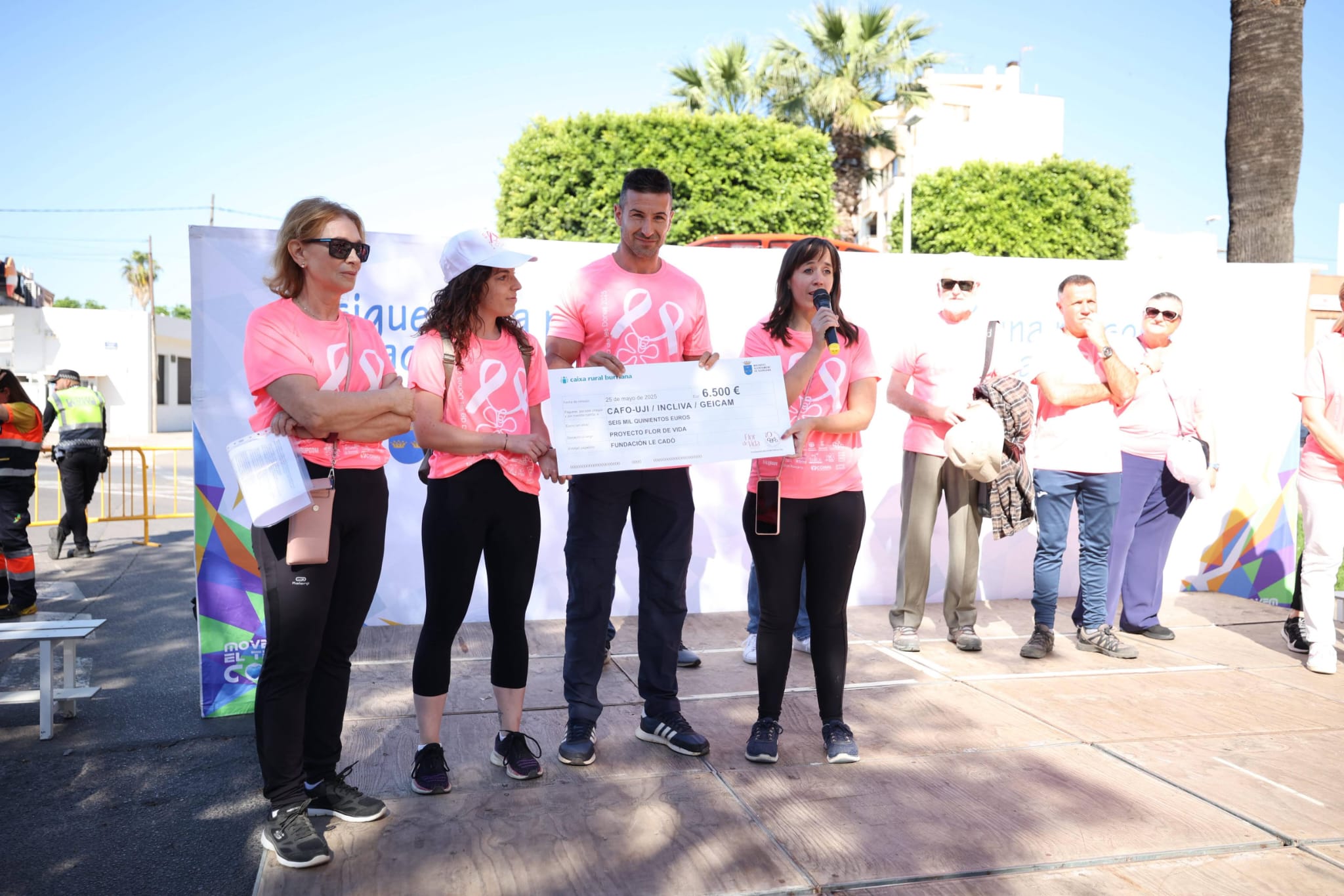 La marcha ‘Un Paseo por la Vida’ no solo ha servido para visibilizar la importancia de la lucha contra el cáncer de mama, sino también para recaudar fondos destinados a proyectos de investigación oncológica de INCLIVA, GEICAM y CAFO-UJI. Los representantes de estas entidades en el evento destacaron la importancia de la investigación como herramienta clave para avanzar en el diagnóstico y tratamiento del cáncer de mama y agradecieron, en el momento de la recogida del cheque por un importe de 6.500 euros, la labor de la Fundación Le Cadó en el impulso de la investigación y el apoyo a las personas afectadas por esta enfermedad.