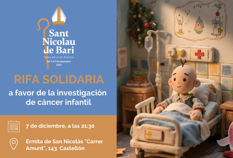 Creemos que no hay mejor homenaje a nuestro patrón que convertir estas fiestas en un símbolo de esperanza, porque apoyar la investigación oncológica infantil es regalar futuro, salud y vida. Desde la ermita de San Nicolás, en el corazón del «Carrer Amunt» de Castellón, queremos sumar fuerzas para apoyar a los pequeños que luchan cada día con valentía contra el cáncer.